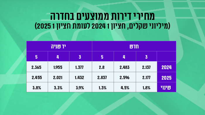 שינוי מחירים (חציון 1 2024 לעומת חציון 1 2025): עליה של כ-1% במחיר דירה. עליה של כ-129% בכמות העסקאות בין התקופות.