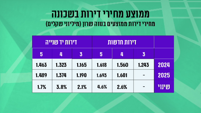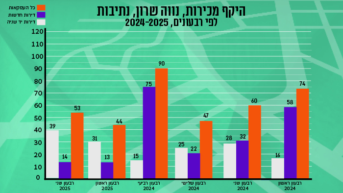 שינוי שנתי במחירי הדירות: עליה של כ-4% בין חציון ראשון 2024 לבין חציון ראשון 2025 לפי מחיר ממוצע לדירה, עליה של כ-4% במחיר הממוצע למ"ר, עליה של כ-17% בכמות העסקאות בעיר בין התקופות.