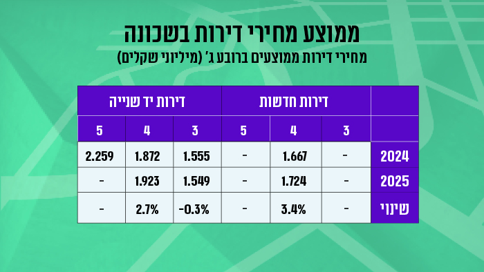 שינוי מחירים (חציון 1 2024 לעומת חציון 1 2025): עליה של כ-2% במחיר דירה. ירידה של כ-35% בכמות העסקאות בין התקופות.
