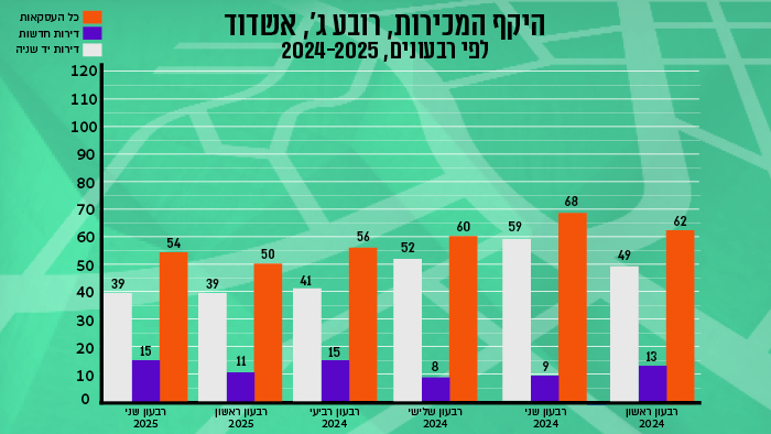 בין חציון 1 2024 לחציון 1 2025 נרשמה בשכונה עליה של כ-2% במחיר דירה, לצד ירידה של כ-35% בכמות העסקאות בין התקופות. זאת לעומת ירידה של 2.5% במחיר ממוצע של דירה שנרשמה באותה תקופה בכלל אשדוד. ברובע ג׳ יש שוק פעיל של דירות יד שנייה, לצד פרויקטים של דירות חדשות בהתחדשות. וכמה תעלה לכם דירה ברובע הוותיק? על דירת 3 חדרים יד שנייה תשלמו בממוצע 1.549 מיליון שקל, דירת 4 חדרים יד שנייה תעלה לכם בממוצע 1.923 מיליון שקל, ודירת 4 חדרים חדשה תעלה לכם בממוצע 1.724 מיליון שקל. מדובר במחירים שנמוכים מהממוצע העירוני בכ-5%.