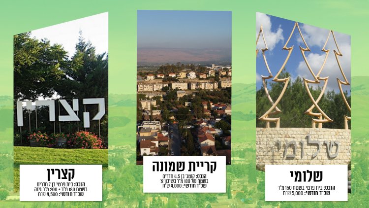 בקריית שמונה, ברחוב ביאליק בשיכון א' בעיר, מוצע להשכרה קוטג' בן ארבעה וחצי חדרים ובשטח של 180 מ"ר, תמורת 4,000 שקל לחודש. ואילו ברחוב סנונית בקצרין מוצע בית פרטי בן 7 חדרים בשטח 180 מ"ר בנוי ועוד 200 מ"ר גינה תמורת דמי שכירות של 4,500 שקל לחודש. יש לציין כי שני הנכסים האחרונים הם ללא ממ"ד.