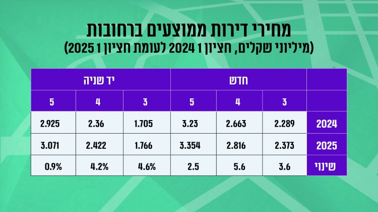 שינוי מחירים (חציון 1 2024 לעומת חציון 1 2025): עליה של כ-3% במחיר דירה. ירידה של כ-10% בכמות העסקאות בין התקופות.