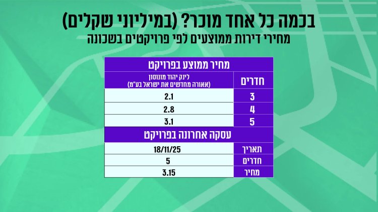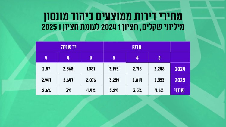 שינוי מחירים (חציון ראשון 2024 לעומת חציון ראשון 2025): עליה של כ-3% במחיר דירה. ירידה של כ-34% בכמות העסקאות בין התקופות.