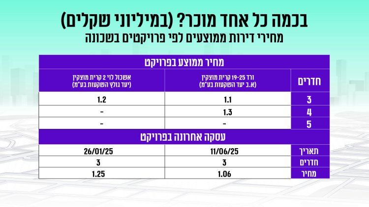 שינוי מחירים (2024 לעומת 2025): עליה של כ-2% במחיר דירה. ירידה של כ-38% בכמות העסקאות בין התקופות.
