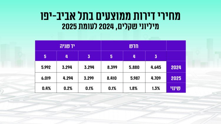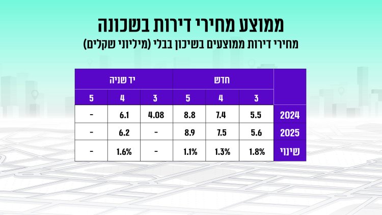 שינוי מחירים (2024 לעומת 2025): עליה של כ-1.4% במחיר דירה. ירידה של כ-4.7% בכמות העסקאות בין התקופות.