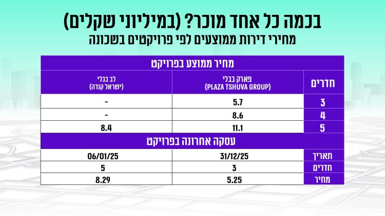 מהנתונים עולה כי שיכון בבלי יקרה מהממוצע בתל אביב בכל הקטגוריות: בדירות חדשות של 3 חדרים המחיר גבוה בכ-19%, בדירות 4 חדרים בכ-25%, ובדירות 5 חדרים בכ-6%. גם בדירות יד שנייה של 4 חדרים נרשם פער חד במיוחד, עם מחירים הגבוהים בכ-44% לעומת הממוצע העירוני.