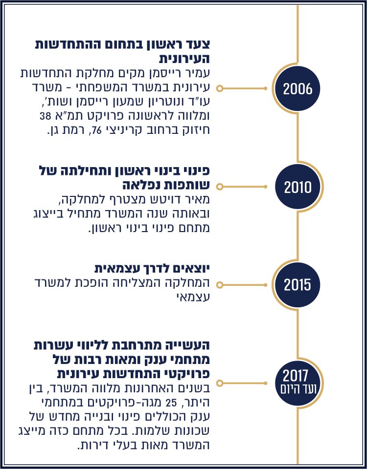 במשרד עורכי הדין רייסמן דויטש ושות' ראו כבר כל תרחיש אפשרי בתחום ההתחדשות העירונית, אך עו"ד עמיר רייסמן ועו"ד מאיר דויטש, שעומדים בראש המשרד, עדיין מתרגשים וגאים ללוות את בעלי הדירות בכל פעם מחדש. אילו רגעים מתחילת הדרך תמיד יישארו איתם, מהם הצדדים הפחות טובים של התפתחות התחום וכיצד כל אחד מהצדדים בעסקה להשפיע על הפרויקט – לטוב ולרע.