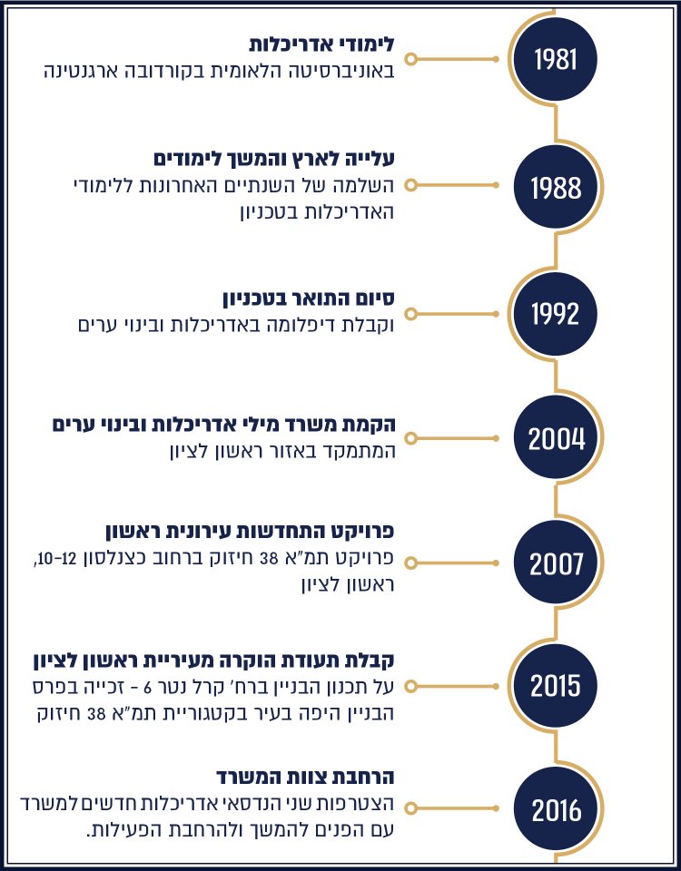 "הייתי בעצם האדריכלית הראשונה שתכננה פרויקט תמ"א 38 בראשון לציון. זה היה ב-2007, אף אחד עוד לא ידע איך להתייחס לזה, חשבו בהתחלה שזה רק תוספת על הגג. השילוב של האתגר הגדול בפרויקטים מסוג זה, יחד עם ההזדקנות של הבניינים בעיר והצורך בחיזוק שלהם מפני רעידות אדמה, נתנו לי את התמריץ לעסוק בתחום".