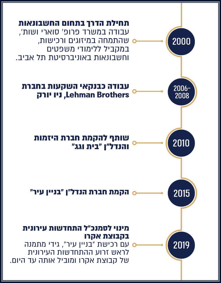 "אמנם הגעתי מבית שקשור לנדל"ן, אבל בהתחלה פניתי לעולמות אחרים של חשבונאות, מימון ובנקאות השקעות. הנדל"ן לא היה אמור להיות חלק מחיי, אבל לפני 14 שנה, בזמן שחיפשתי לצמצם את ההתעסקות בניירת ובייעוץ ולעבור לעשייה, שמעתי על הפוטנציאל בהתחדשות עירונית וקפצתי על ההזדמנות להצטרף לעשייה גדולה ומשמעותית. יש בתחום הזה אוסף מרכיבים מדהים, שילוב של תחומים רבים שנוגעים במקביל באנשים, בנכסים, בעשייה גדולה, בעבודה רגשית אבל גם רציונלית, באדרנלין של מכרזים וזכיות. זה תחום מאתגר ומרתק בצורה יוצאת דופן".